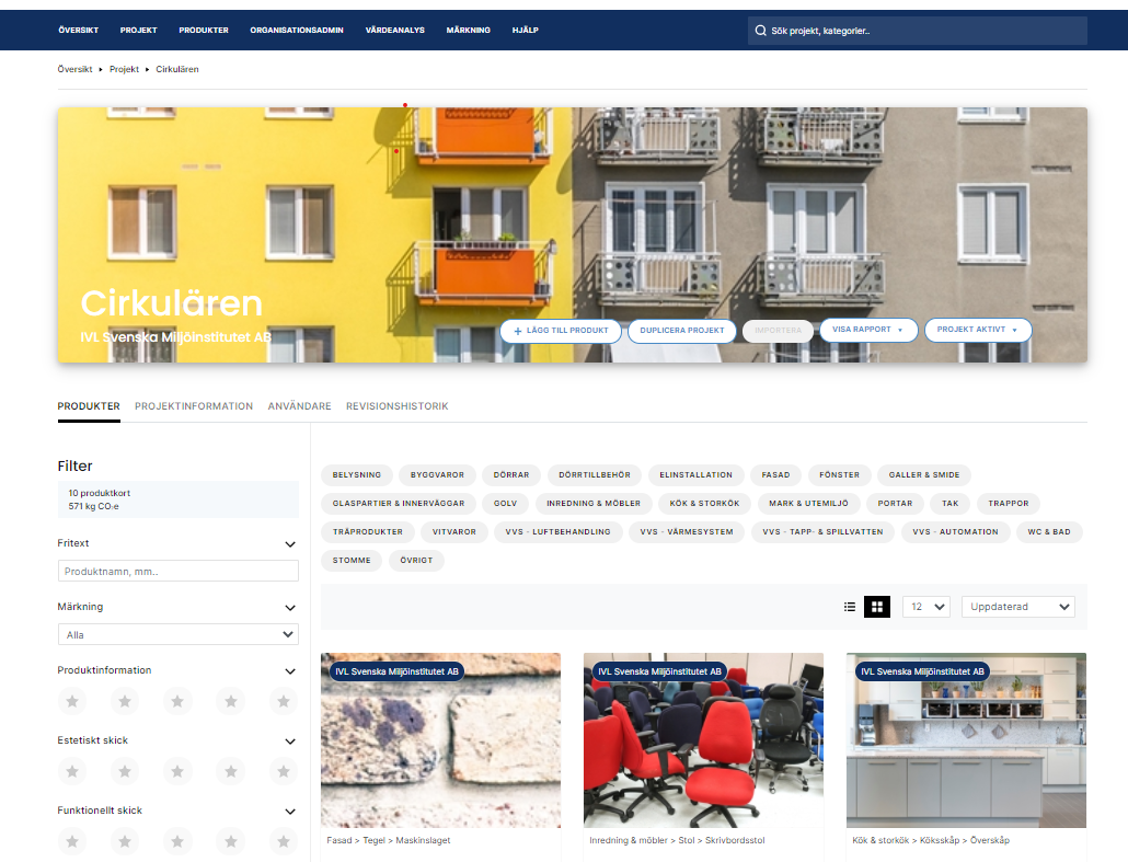 I produktbanken bygger du ditt projekts eller er organisations egna databas över era befintliga resurser. Här skapar ni er digitala återbrukshub. Du kan bjuda in projektteam antingen enbart till specifika projekt, eller bjuda in till hela din organisation konto i CCBuild.