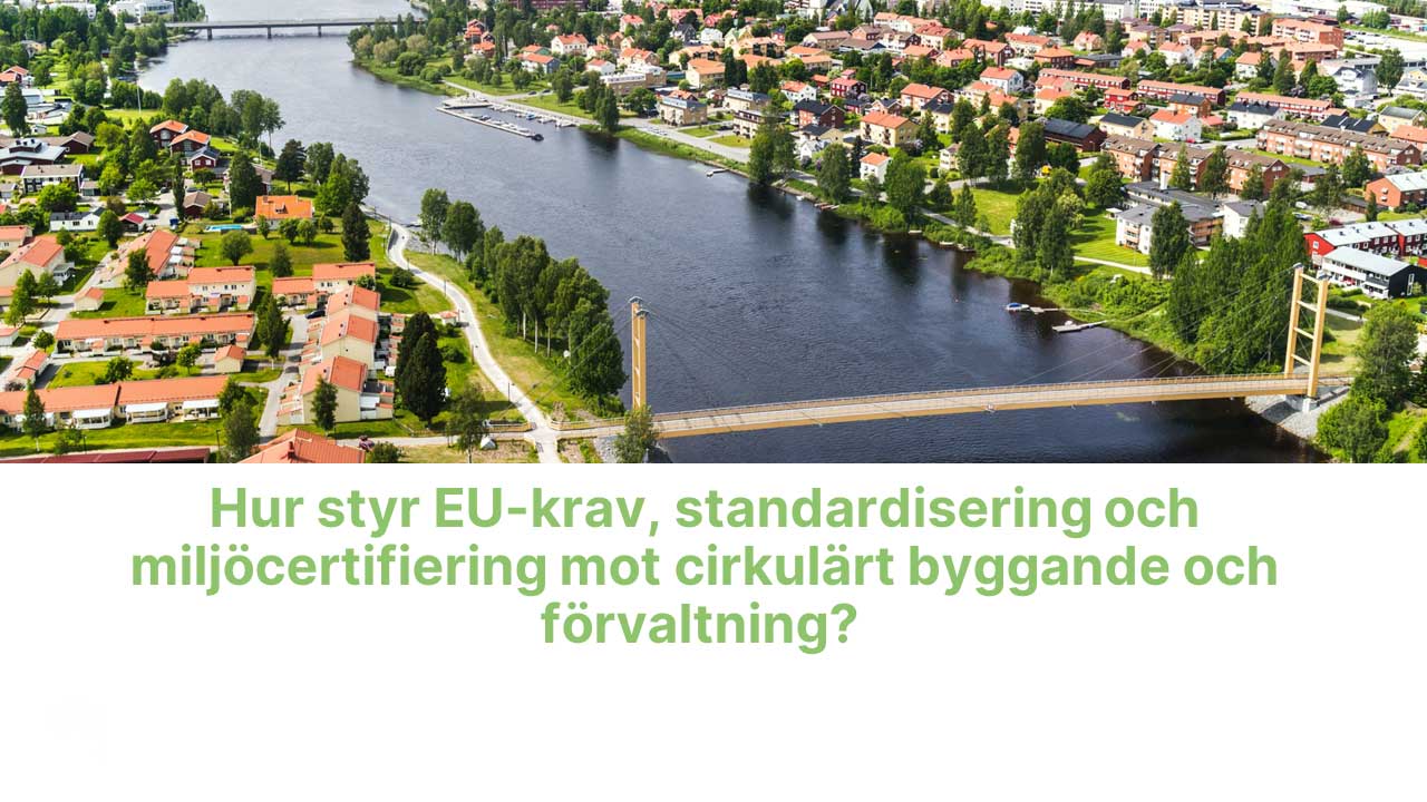 Den 19 mars hölls en nätverksträff för CCBuilds samarbetsparter på temat ”Hur styr EU-krav, standardisering och miljöcertifiering mot cirkulärt byggande och förvaltning?” Läs referatet från träffen här!