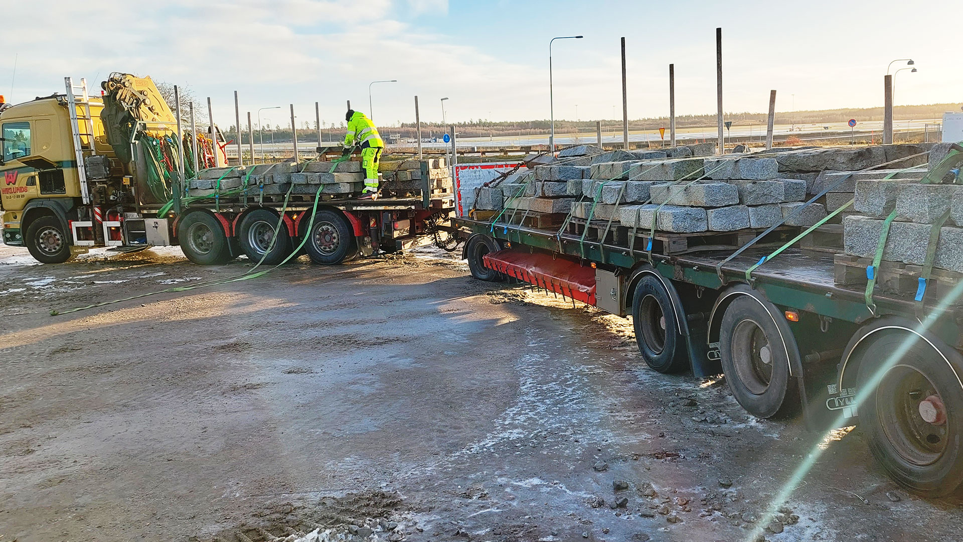 Tillsammans med Zurface har vi återbrukat 300 ton natursten, varav 200 ton är begagnat som nu fått ett tredje hem. Processen fungerar som så att vi plockar upp stenen, bedömer och inventerar den i våra lager och vid behov restaurerar Zurface produkten. Sedan körs den till en ny plats av oss.
