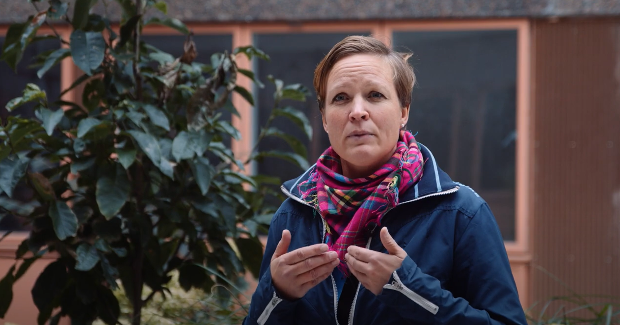 På bilden ovan syns Johanna Andersson, expert cirkulärt byggande på IVL Svenska Miljöinstitutet, som medverkar i filmen.