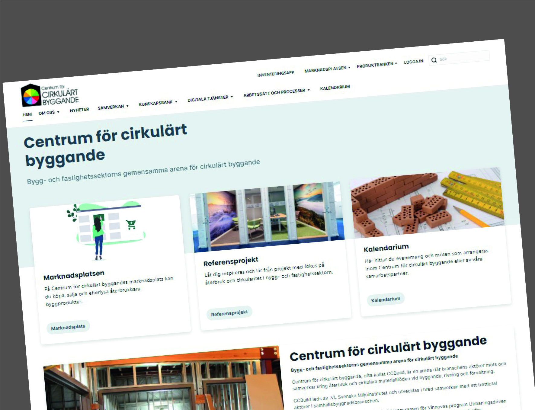 Webbsidan ccbuild.se är navet i Centrum för cirkulärt byggande. Här delar samarbetsarenan nyheter, tips och kunskaper om återbruk, och här kan våra partner berätta om sina återbruksprojekt och evenemang.